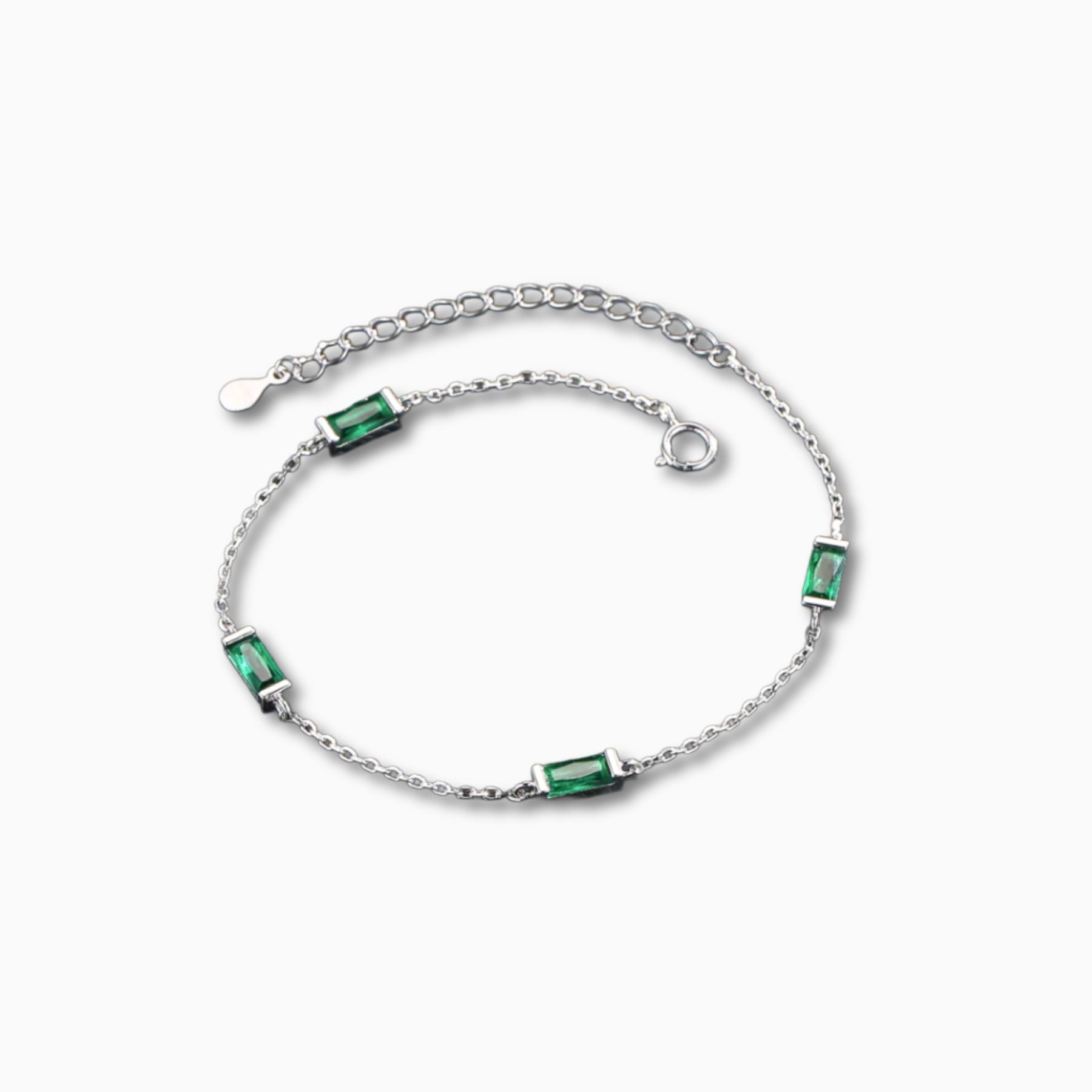 A stunning bracelet crafted from sterling silver, with radiant emerald green baguette cubic zirconia stones. Elegant, yet with sprinkle of popping color - perfect for both casual and formal occasions.