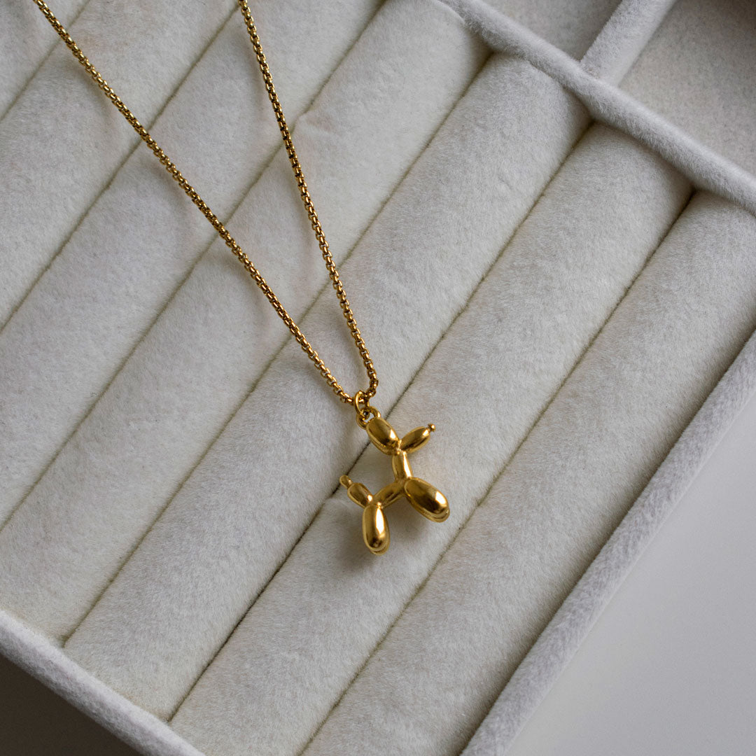 Bring a dose of joy to everyday outfits with our Balloon Dog Necklace. Sculptural yet delicate, the pendant captures the silhouette of a balloon dog in 18k gold plating over durable 316L stainless steel. This piece is designed for daily wear and makes a playful, sophisticated gift.