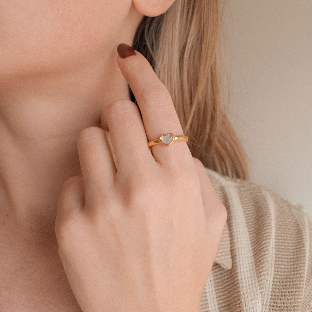 An enchanting ring featuring a shell heart. Quite a statement piece that'll upgrade your outfit for a casual or special occasion.