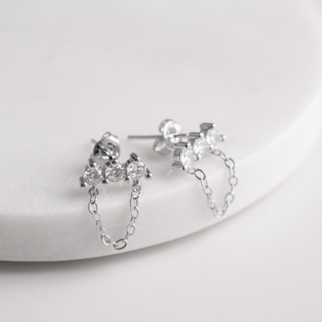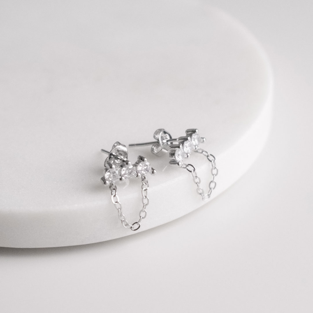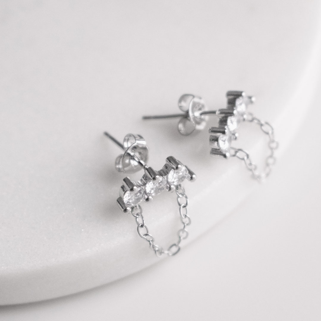 Delicate silver tassel chain earrings finished with a subtle zircon sparkle. Light, fluid, and easy to wear — they catch the light with every movement and elevate even the simplest look.