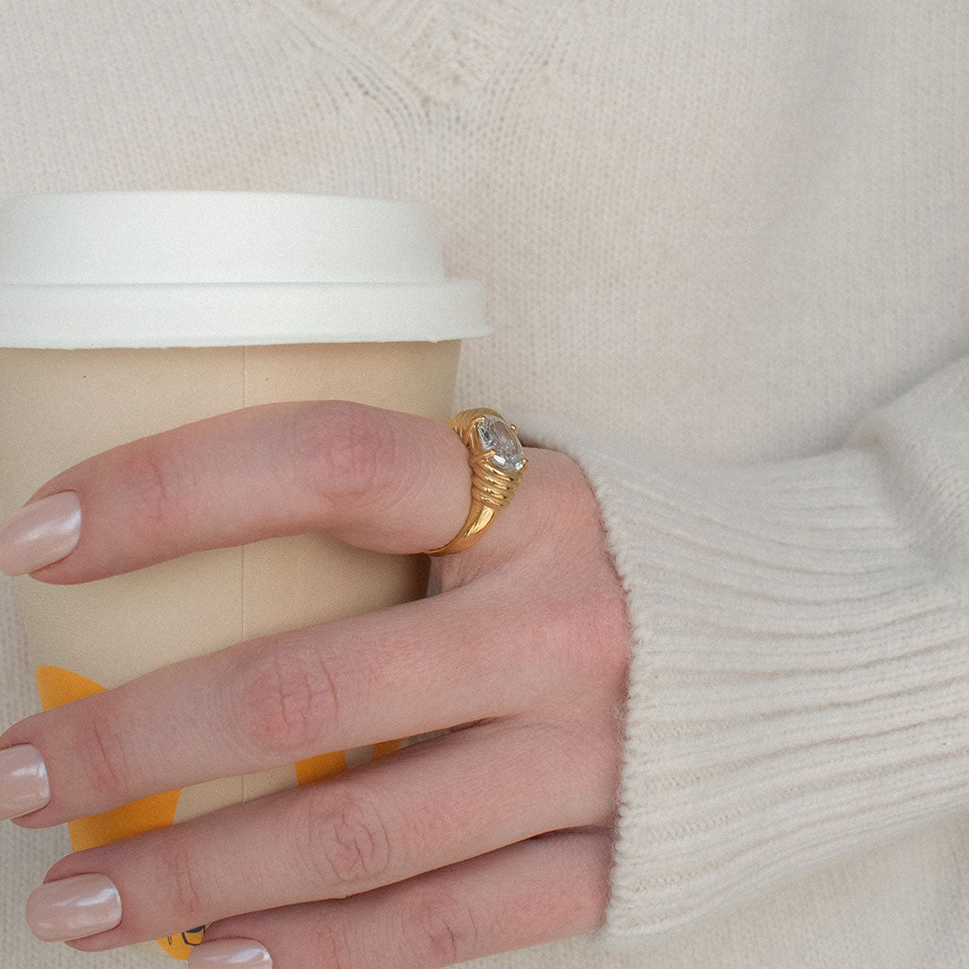 Vintage Ribbed Cubic Zirconia Ring