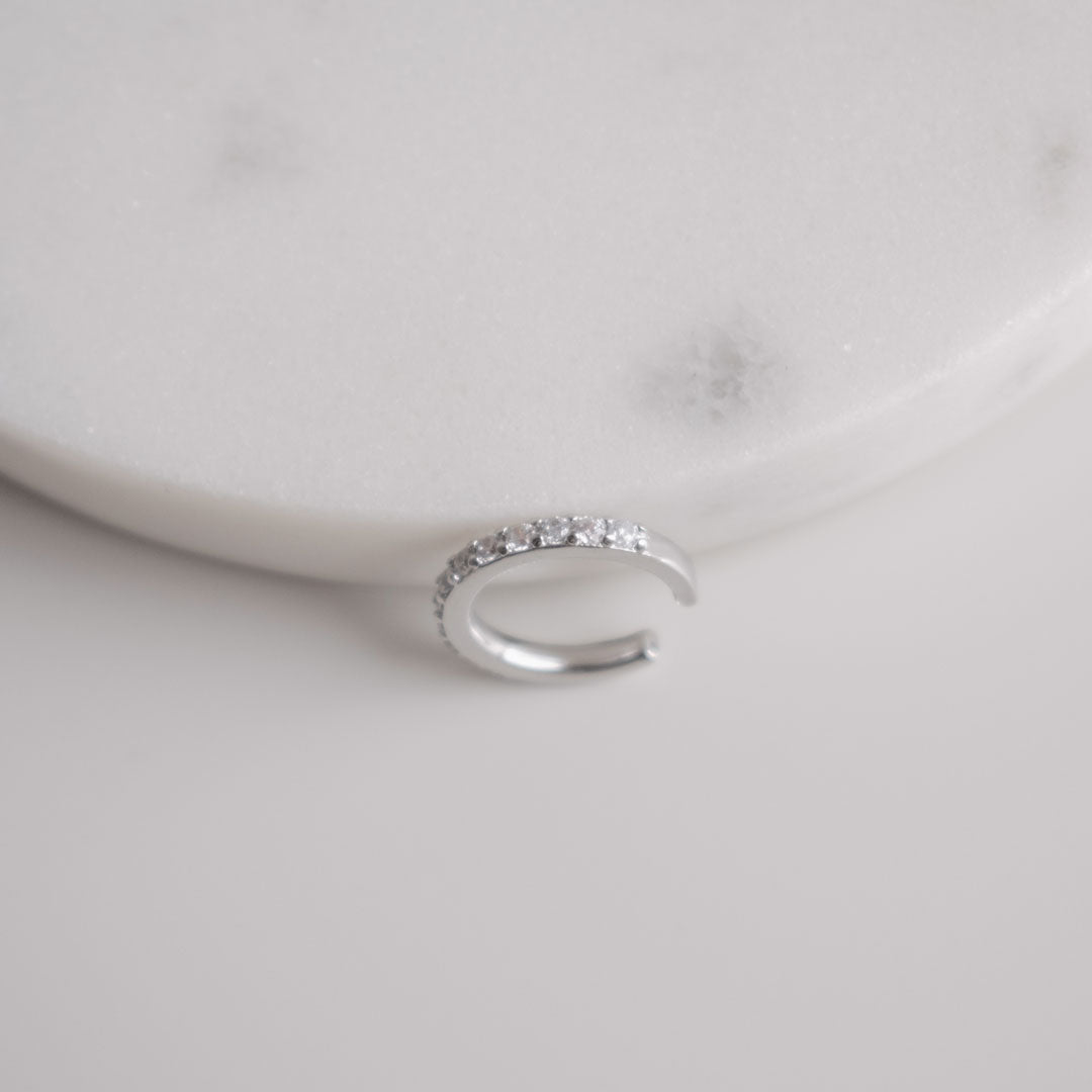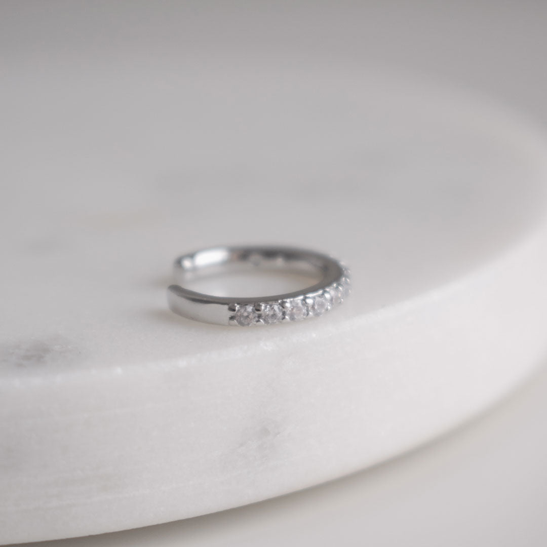 Silver ear cuff in stainless steel, finished with a sparkling zircon. No piercing, all attitude. ✨