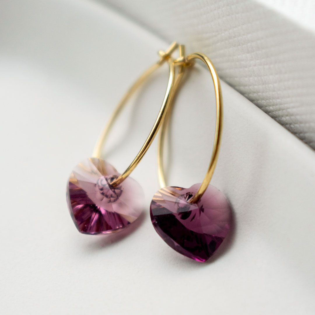 Серьги-кольца с кристаллами в форме сердца из серебра | Сделано в Эстонии 🇪🇪